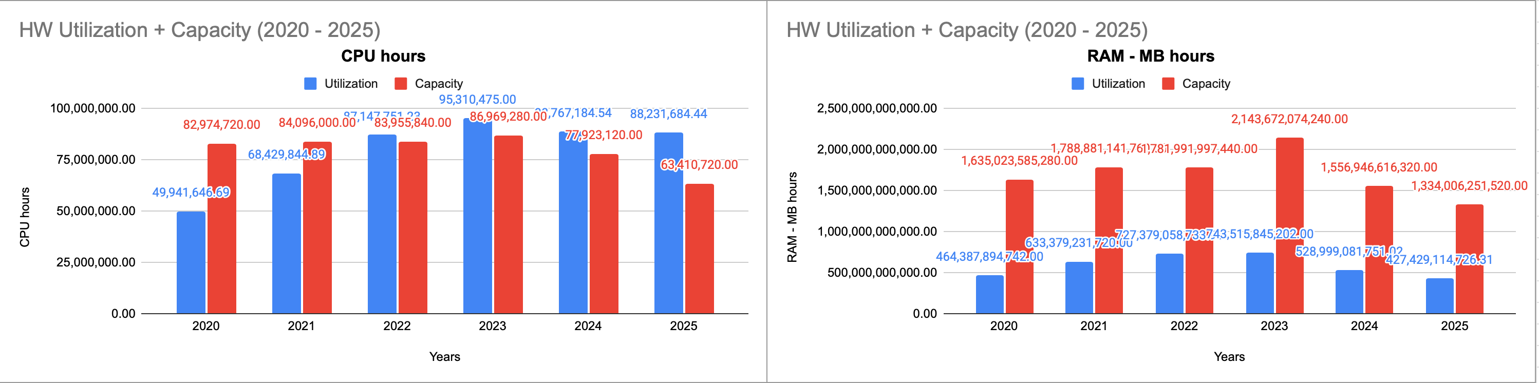 V roce 2025 byla kapacita paměti RAM 145,23 TB, která byla přes rok čerpána 407 628 TB hodin. To odpovídá využití 32 %.