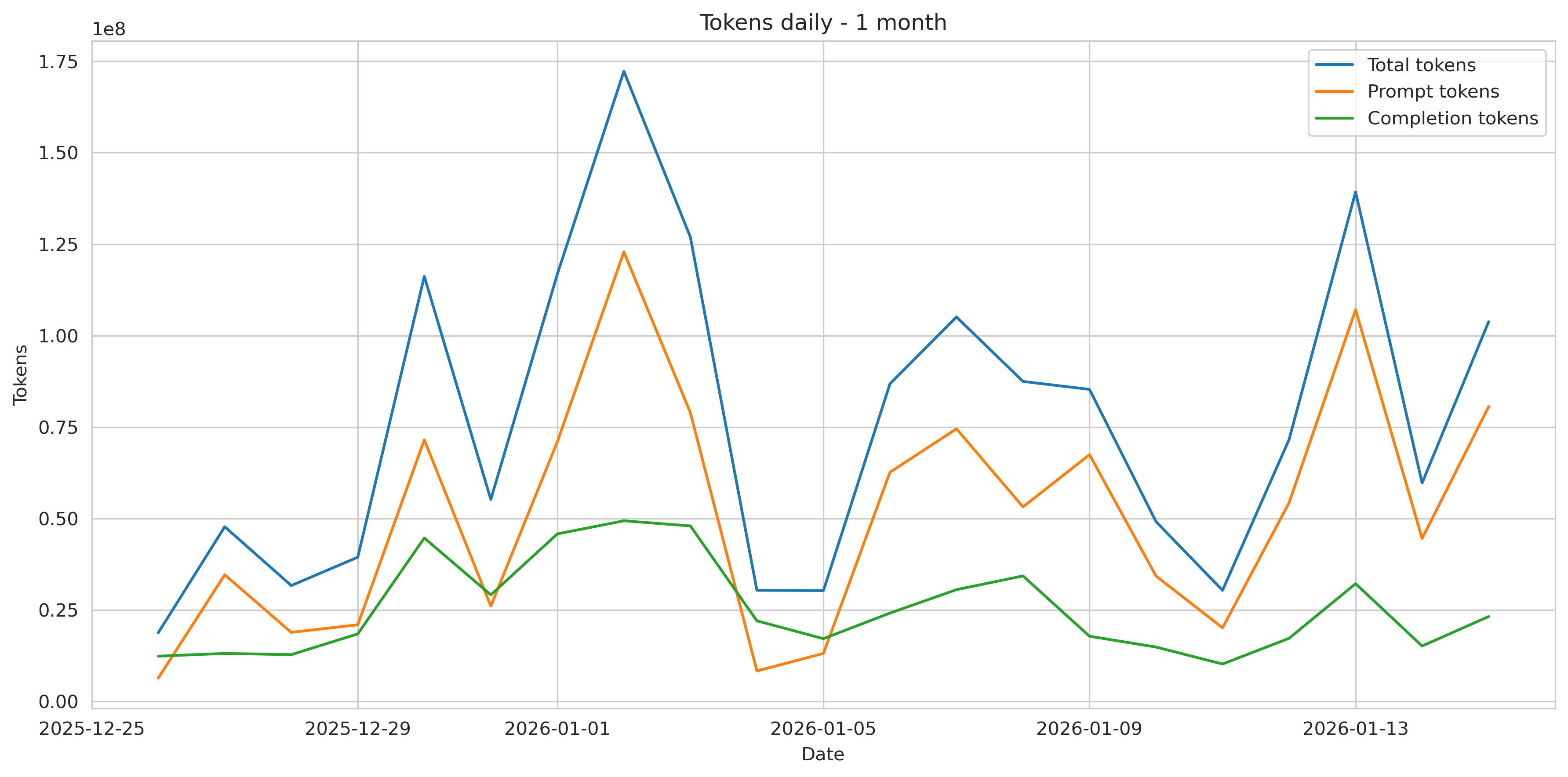 Denní využití tokenů během posledního měsíce roku.