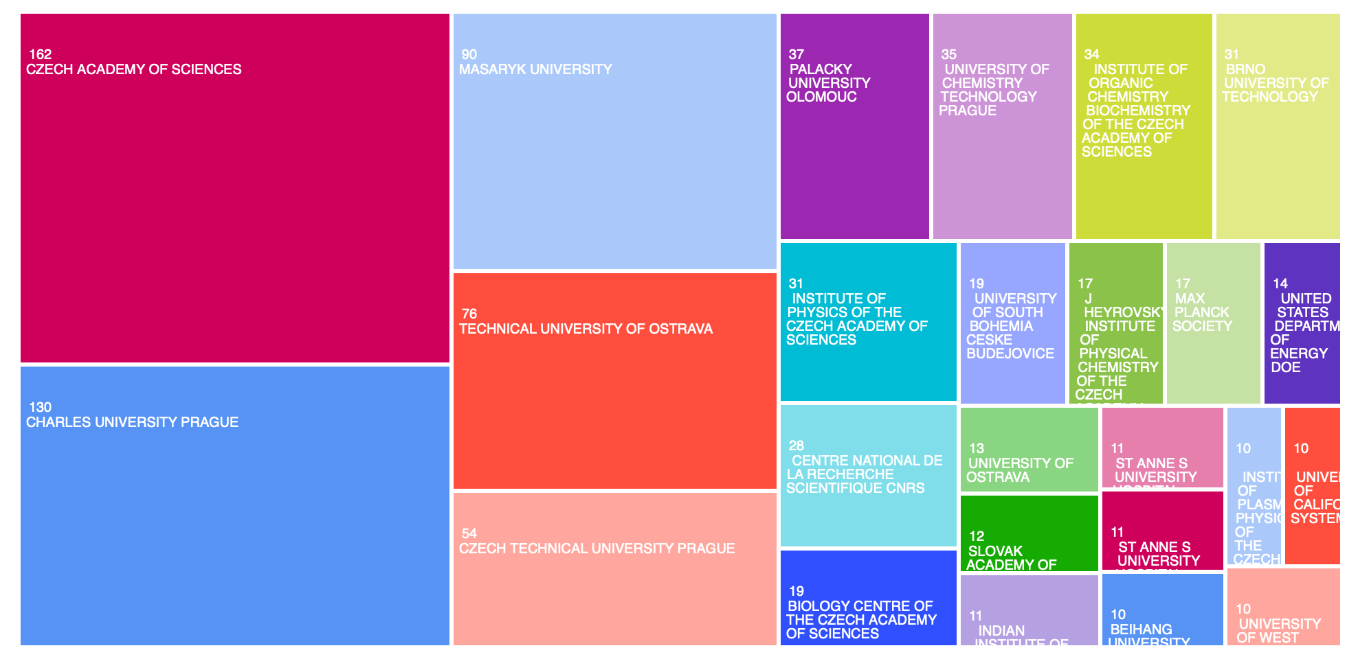 Organizace u publikací s poděkováním e-INFRA CZ (WoS)